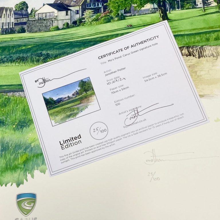 High-fidelity prints of our modern watercolour golf art, signed, numbered, and crafted for collectors who appreciate quality, style, and wonderful memories.