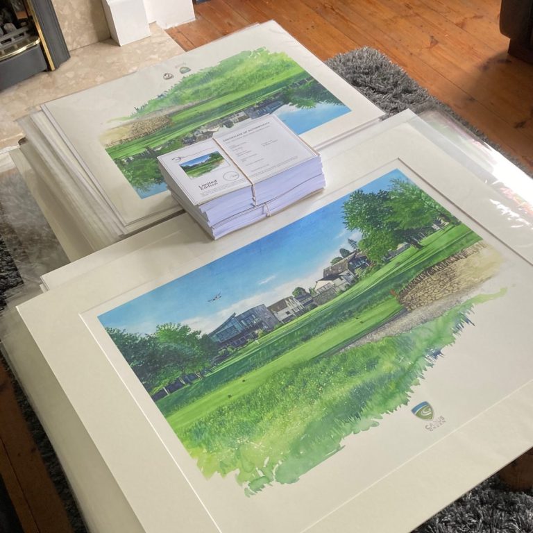 We aim to make our paintings and graphics work for you financially. That is why we offer packaged combinations of originals and prints to enable clubs to create revenue from an initial investment. Our art becomes framed clubhouse prints, limited edition member gifts, Society prizes, even a hole-in-one memento.